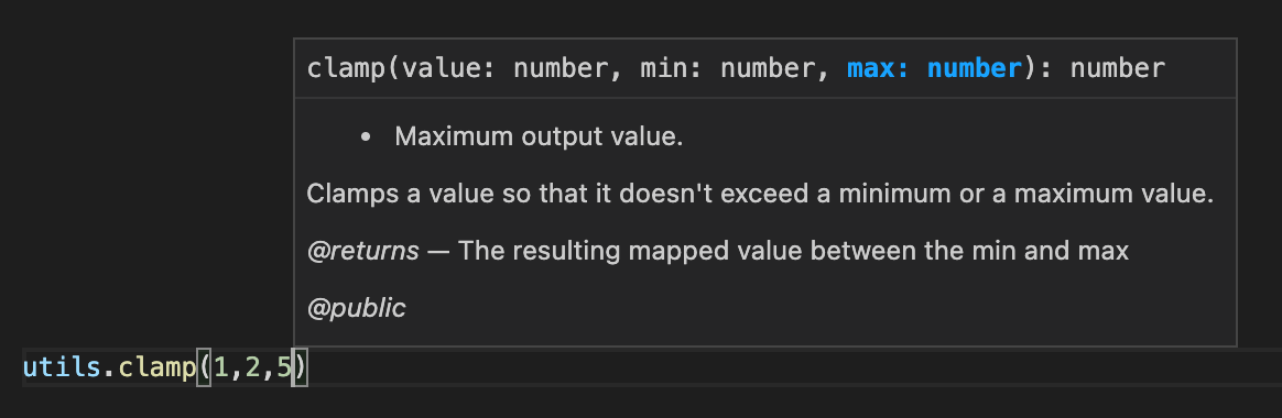 Users of this library see these hints displayed as they type the clamp() function: