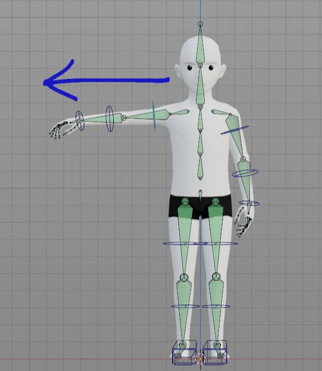 In inverse kinematics, or IK, the child in the hierarchy can influence the movement of its parents. In this case, taking the arm as an example again, when the hand is moved around, the rest of the arm will follow the motion. It also means that no matter how the shoulder moves, the hand will maintain its position. In this setup, a pole vector/pole target will control in which direction the bones will bend. Legs are usually in IK and that’s essential for the feet to stick to ground level while animating.