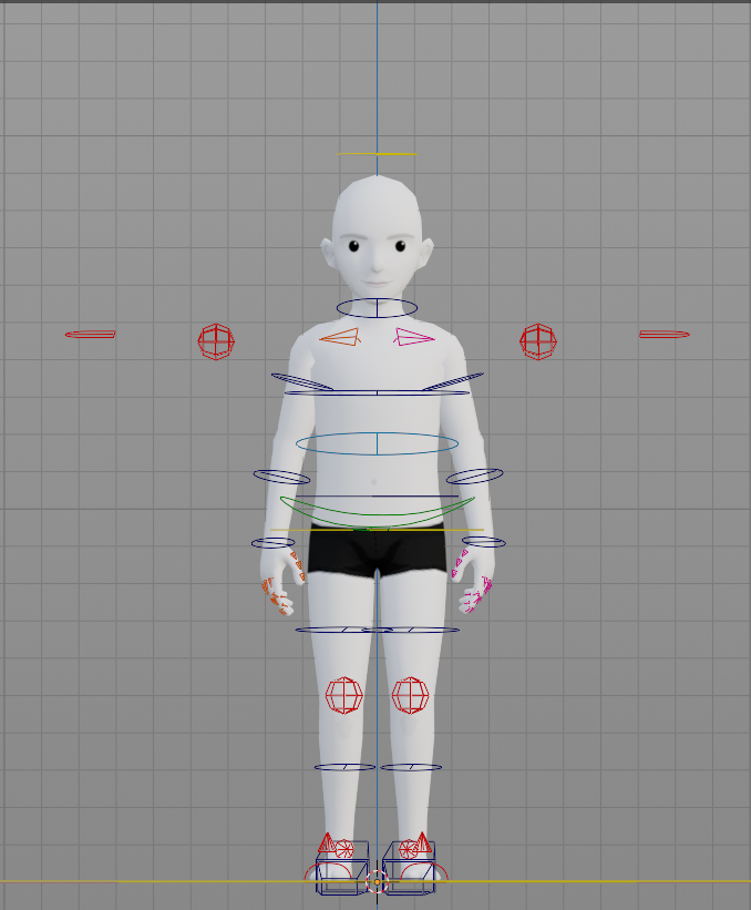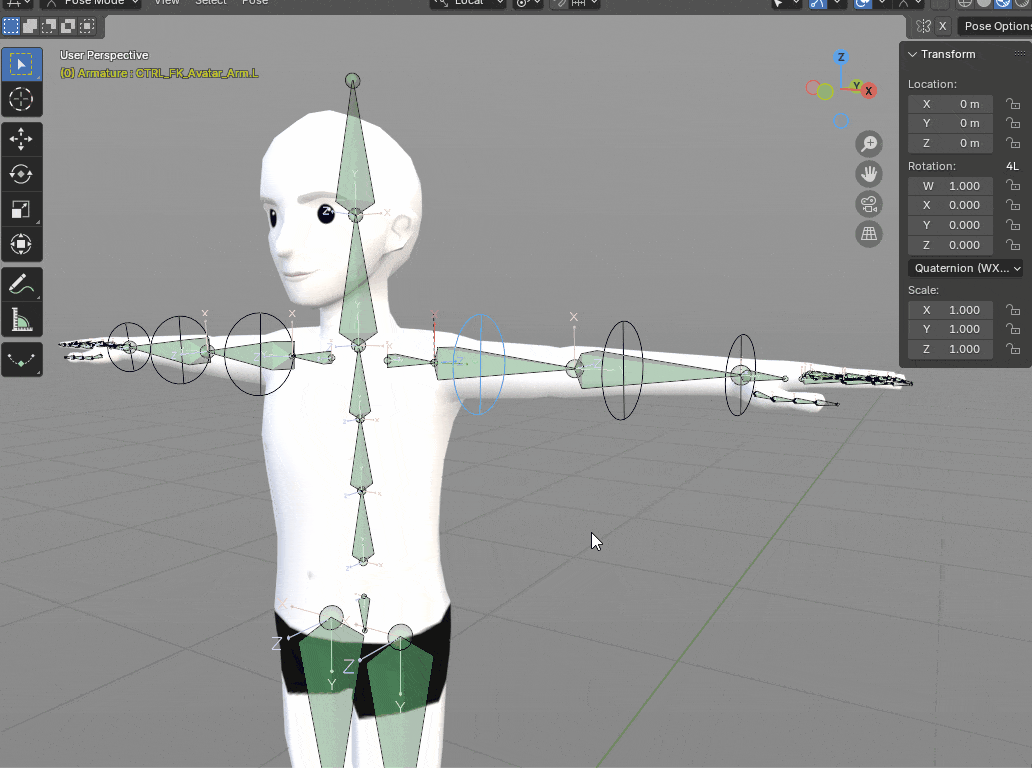 Controls are basically non-deforming bones, which means they will not affect the mesh, making them completely safe to be manipulated and animated. Their function is to control the base skeleton through constraints and drivers, without directly touching it. They usually have different shapes and colors as a visual cue for their functions and purposes, making it easier for the animator to tell bones apart. Some of them will also have more than just location, rotation, and scale transforms because it’s possible to add custom properties to them, such as an IK/FK switch.