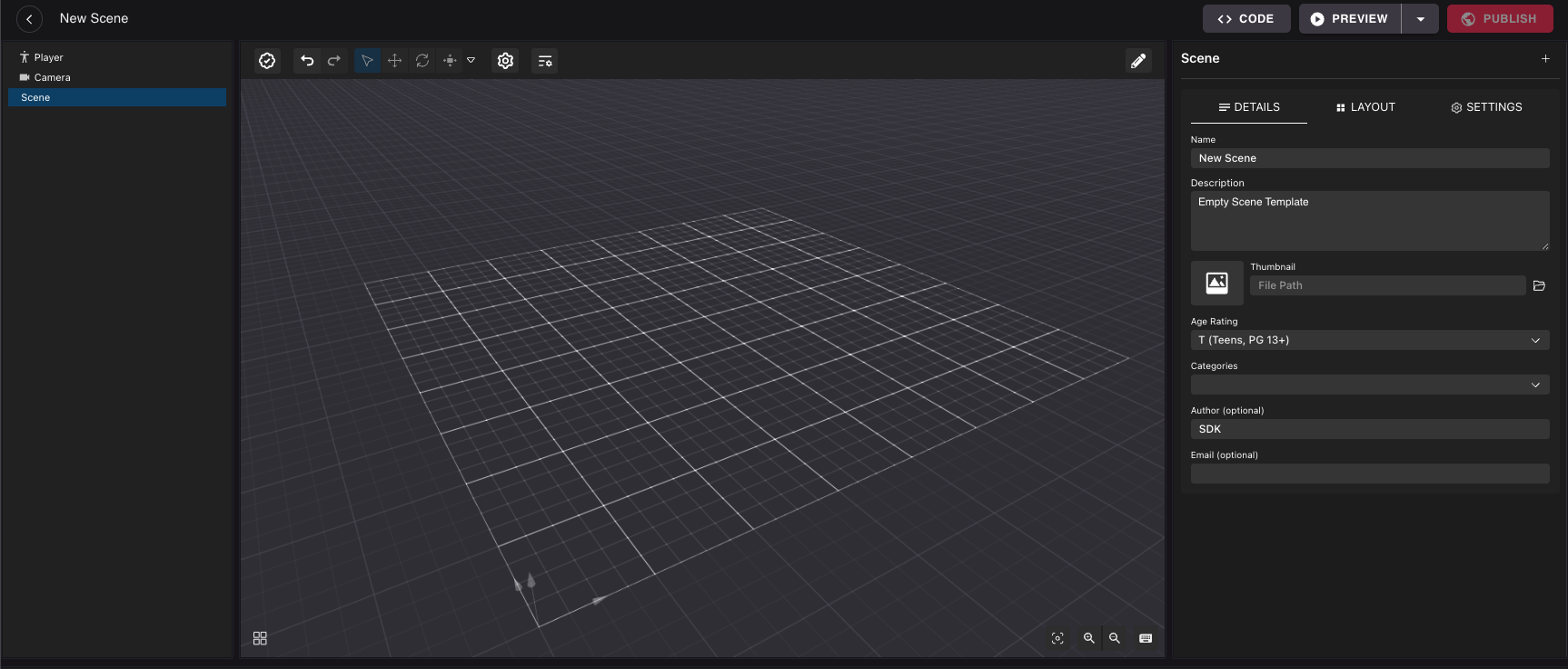 1. Open the Creator Hub, go into the Scene Editor section.